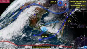 Para mañana, la masa de aire polar que generó al frente No. 17, originará ambiente frío a muy frío sobre gran parte del país, ocurrencia de heladas en el norte, noreste y centro de la República Mexicana; además de “Evento de Norte” con rachas superiores a 80 km/h en el Istmo y Golfo de Tehuantepec. El potencial de lluvia previsto será: