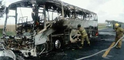 REYNOSA, TAMPS., (El Universal).- Un autobús que trasladaba a 30 elementos de la Policía Federal, de Reynosa a Ciudad Victoria, se incendió en el tramo del ejido Alfredo V. Bonfil de la carretera a San Fernando.