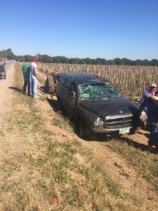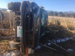 En el lugar se encontró una camioneta tipo van color gris con número de placa UWK-622-U, conductora de nombre Mariana N con domicilio en comunidad del aguacate Rioverde S.L.P. refiere la misma que venía del refugio y se dirigía a su casa perdiendo el control del volante para salirse del camino y volcando en la huerta de tomates del C. Erasmo C vecino del Refugio, arribando la unidad 131 de la Cruz roja