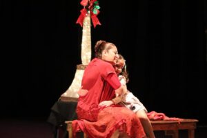Durante la obra, las familias asistentes pudieron deleitarse con la calidad del espectáculo presentado en la que se relata la historia de una niña huérfana que sobrevive en el mundo vendiendo cerillos y al encender cada fósforo comienza a pedir deseos y a vivir fantasías a través de la música y la danza.