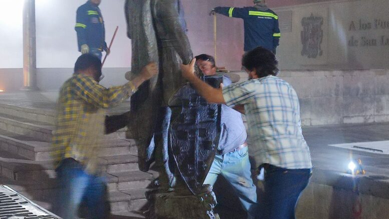 El H. Ayuntamiento de San Luis Potosí, a través de la Dirección de Cultura Municipal, contando con el apoyo del escultor Mario Cuevas (creador de la pieza), retiraron esta madrugada de miércoles 20 de marzo la escultura San Luis Rey de Francia, ubicada en la Plaza de Los Fundadores, a fin de hacer una modificación en su brazo superior izquierdo, de acuerdo con la iconografía histórica existente.