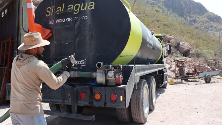 – Como parte del Programa Ordinario de Atención a colonias y comunidades que no están conectadas a la red, se distribuye agua en vehículos cisterna.
