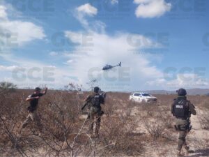 A través del helicóptero de Seguridad Pública Estatal se realizan barridos aéreos en la comunidad de Charco Cercado y localidades aledañas además se mantener presencia terrestre de la Guardia Civil Estatal para la posible captura de los presuntos responsables que de acuerdo a reportes habrían robado un trailer cargado con medicamento.
