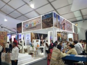 Intensa actividad se lleva a cabo en el Tianguis Turístico donde el stand de San Luis Potosí recibe constante afluencia, al mostrar lo mejor de sus actividades turísticas y ofrecer una atractiva muestra gastronómica y artesanal mientras las operadoras turísticas atienden citas de negocios.