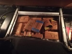 Al pasar por el área de revisión no intrusiva se localizó dentro de un tractocamión marca Internacional, color blanco, un bulto en el interior de la cabina, mismo que al ser revisado ocultaba varios paquetes que contenían un polvo blanco con las características propias de la cocaína, sumando un aproximado de 100 (cien) kilogramos.