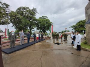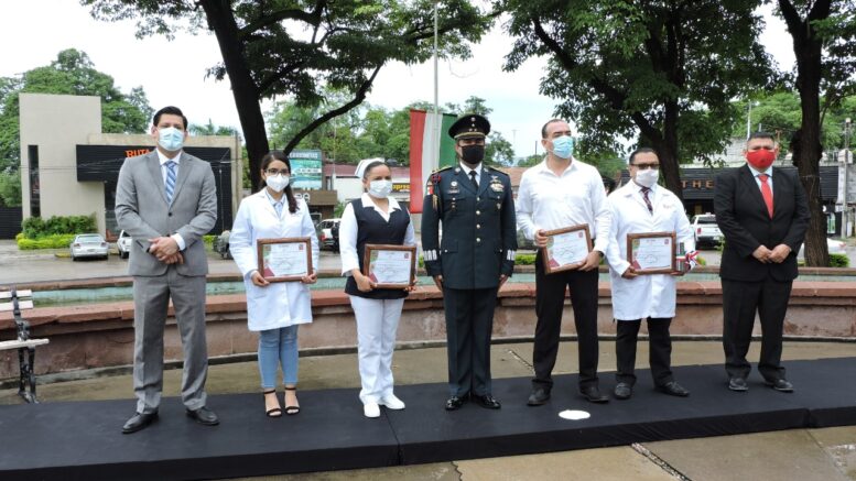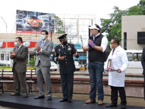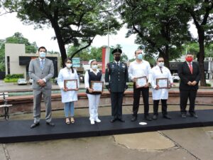 Dicha ceremonia estuvo encabezada por el Coronel de Infantería, Rodolfo Blancas Osorio, Teniente del 36 Batallón de Infantería, quien dijo que hoy, todos los honores deben ser para los trabajadores de la salud que ha dejado incluso su vida en la lucha contra el virus del SARS-CoV-2.