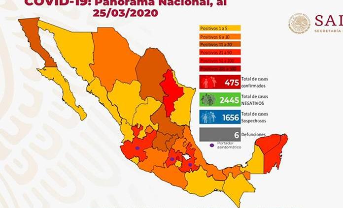 Seis fallecidos y 475 casos positivos de coronavirus en México