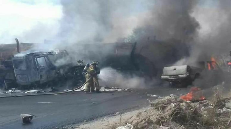 Seis muertos en choque de camioneta y pipa doble remolque con combustible