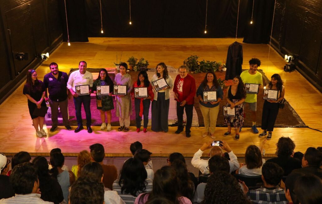 Al concluir la presentación de clausura con la obra “Cantares” por parte de Iyari Teatro de vida en el Foro Sombra, con la dramaturga, directora y actriz Sayuri Navarro, Premio Nacional de Dramaturgia, quien ofreció un sensible, introspectivo y autobiográfico monólogo ganador del “Premio de Dramaturgia Emilio Carballido 2024”