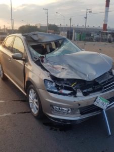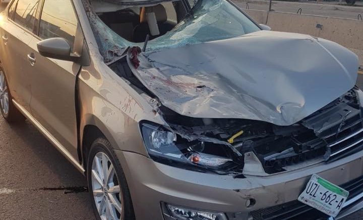 Los hechos ocurrieron esta mañana en carril central con dirección a la salida a Zacatecas, cuando el automóvil en color dorado circulaba de forma normal y se presume que el caballo salió corriendo de manera intempestiva por carriles centrales.