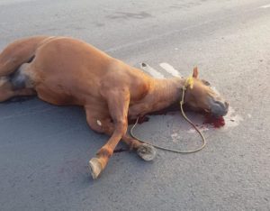 Un caballo perdió la vida al s de embestido por el conductor de un automóvil Volkswagen.