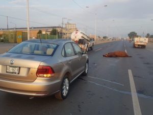 El conductor de un vehículo Vento atropelló y dio muerte a un caballo que corría por el asfalto del Periférico Norte a la altura del “Mercado de las Verduras”.