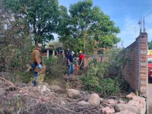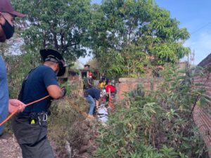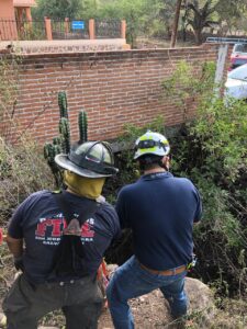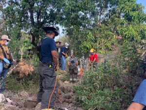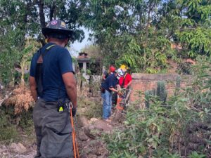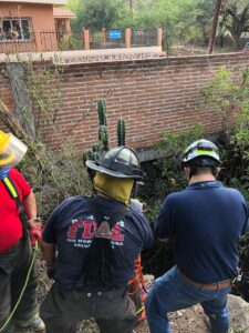 los familiares decidieron buscarla encontrándola en el lugar pidieron el apoyo al sistema de emergencias 911. Y reportaron a la base de bomberos que acudió al rescate .