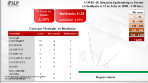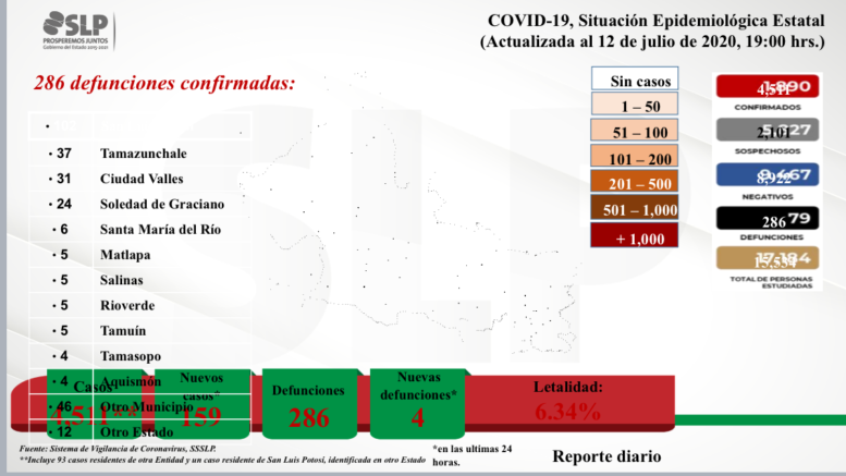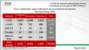Continúa el aumento de casos de coronavirus en San Luis Potosí, el cual llega a 4 mil 511 casos ,