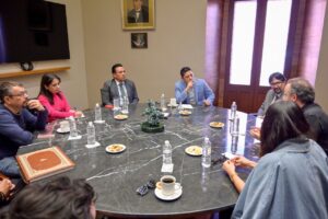 Resultado de la decidida promoción de las ventajas y atractivos de San Luis Potosí, que el Gobierno del cambio emprendió desde el inicio de la administración, lo que ha consolidado a la entidad como locación para el rodaje de grandes producciones y grabaciones cinematográficas, directivos de la firma Netflix de distribución digital de contenido multimedia (streaming) se reunieron con el Gobernador del Estado, Ricardo Gallardo Cardona, con la finalidad de concretar más producciones en diversas locaciones del territorio potosino, para ser transmitidas en su plataforma.