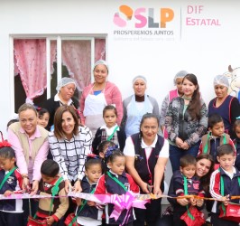 Por la mañana, la Directora del DIF Nacional, Laura Barrera Fortuol y la Presidenta del DIF estatal Lorena Valle Rodríguez, inauguraron el primer desayunador escolar de la capital, en el jardín de niños “Profa. Sofía Saldaña Nieto” en beneficio de 94 niños y niñas, en la localidad de Escalerillas, municipio de San Luis Potosí, con recursos del Sistema DIF Nacional, por un monto de inversión de 193 mil pesos para infraestructura y equipamiento.