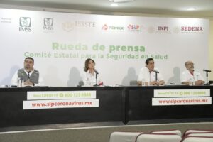 “Nuestro Sistema de Reconversión en salud no ha sido rebasado, estamos en números positivos todavía; sin embargo, los últimos días se ha visto que el ritmo de crecimiento de casos y decesos se han mantenido, es una señal inequívoca de que estamos en fase de alerta máxima de contagios, SLP está en semáforo rojo”, reiteró la Secretaria de Salud.