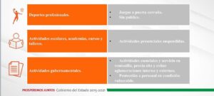 • De un 64% de ocupación hospitalaria en las últimas semanas, el estado ha bajado este día al 36% de ocupación en camas con ventilador, indicadores que hacen que el estado regrese a este color, aunque casos diarios se mantienen en una meseta alta de contagio por lo que se está en Alto Riesgo de Contagio.