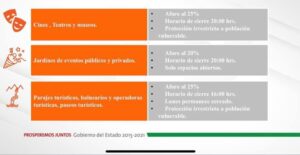 • Mercados, supermercados y tiendas de abarrotes cierre a las 8 de la noche.