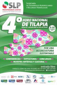 En San Luis Potosí, a través de conferencias, casos de éxito, exposición de proveedores, concurso de chefs, se realizará en San Luis Potosí el 4º Foro Nacional de Tilapia los días 9 y 10 de noviembre, teniendo como objetivo fomentar la acuacultura en la entidad, particularmente en la producción de tilapia.