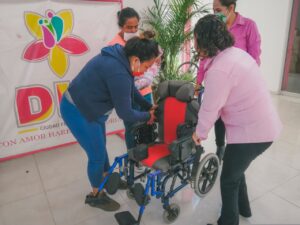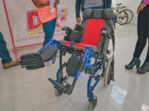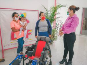 La presidenta del sistema municipal DIF Joanna Lizet Cárdenas Palomares agradeció ser el ser enlace de las personas con un gran corazón por ayudar, en esta ocasión la Coordinación de Atención Social a Personas con Discapacidad quien a través de la señora Teresita de Jesús Segura de EL Refugio, Ciudad Fernández por la donación de la silla de ruedas de Trauma y PCI (Parálisis Cerebral Infantil) con protección, reclinable, diseñada para infantes, cinturón cruzado de seguridad, eleva pierna ajustable, Asiento con forro antitranspirante, que es acorde a las necesidades de la menor Sonia Guadalupe de 2 años con 5 meses de la comunidad de La Reforma, quien padece doble hemiparesia espástica secuela hidrocefalia y con mielo meningocele lumbar, esta silla le ayudará en sus traslados a las terapias que recibe en UBR (Unidad Básica de Rehabilitación de Ciudad Fernández).