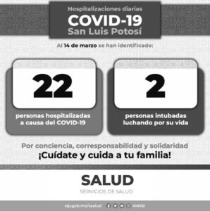Hoy en día, el Gobierno del Estado a través de los Servicios de Salud convoca a las y los potosinos a actuar en unidad, solidaridad y corresponsabilidad para frenar la pandemia, y a continuar dando muestras de empatía con el personal de Salud que se ha mantenido en los hospitales salvando la vida de miles de pacientes.