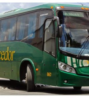 El autobús es marca Iriza, propiedad de la empresa Autobuses Vencedor, color verde.