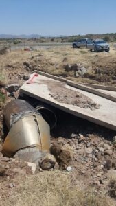 La falla de este martes se registra en el kilómetro 36+760 de la línea de cadenamiento, a 300 metros de la ocurrida la semana pasada y en las inmediaciones de la presa El Fuerte en Tierra Nueva, por lo que desde el primer momento ingenieros de la CEA acudieron al lugar para supervisar los trabajos de reparación.