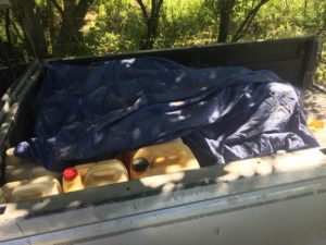 Los hechos se registraron la tarde de hoy martes en el municipio de Ébano Elementos de la SSPE en coordinación con fuerzas policiales llevaron a cabo el operativo B.O.M. en donde se detectó en el camino Manuel Gómez Morin colonia Vicente Inguanzo una camioneta pick- Up color azul y en la caja de la unidad se localiza 20 garrafas de 20 litros líquido con características de (gasolina) cada una con un aproximadamente 400 Lts, no hay conductor ni persona propietaria del vehículo.
