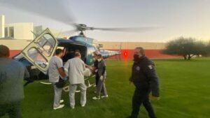 El agente estatal Gerardo de 26 años de edad presenta lesión a la altura de la axila procediendo a solicitar apoyo para su atención médica, efectuando su traslado a través de un en helicóptero hacia un centro hospitalario en la capital.