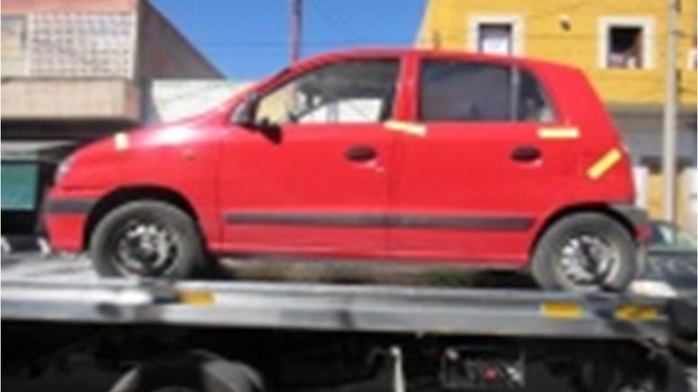 El vehículo fue localizado en Avenida Granjas y calle Teponahuastle, en la colonia Jacarandas. Se trata de un Dodge Attos, color rojo, modelo 2001 y placas de San Luis Potosí. La unidad con reporte de robo del 15 de junio, fue encontrada estacionada y cerrada.