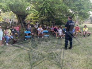 Los elementos acudieron el fin de semana al fraccionamiento Praderas del Río, a fin de tener un contacto cercano con la comunidad, que permita evitar que los jóvenes se vean inmiscuidos en actividades o actos delictivos, en donde se trataron los temas de “Adicciones” y “Riesgo en las redes sociales”. Alrededor de 35 personas, entre ellas jóvenes y padres de familia, acudieron a las pláticas de prevención.