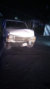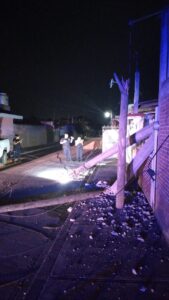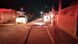 De acuerdo a una de las afectadas solo se escuchó un estruendo muy fuerte como a las 00:45 horas, en el exterior de su domicilio, por lo que salieron a azomarse y vieron un vehículo color blanco atravesado en la calle, el cual había derribado dos postes aparentemente de Luz.