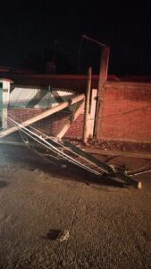 SUJETO EN CAMIONETA DERRIBÓ POSTES Y DAÑÓ BARDA, Y SE DIÓ A LA FUGA
