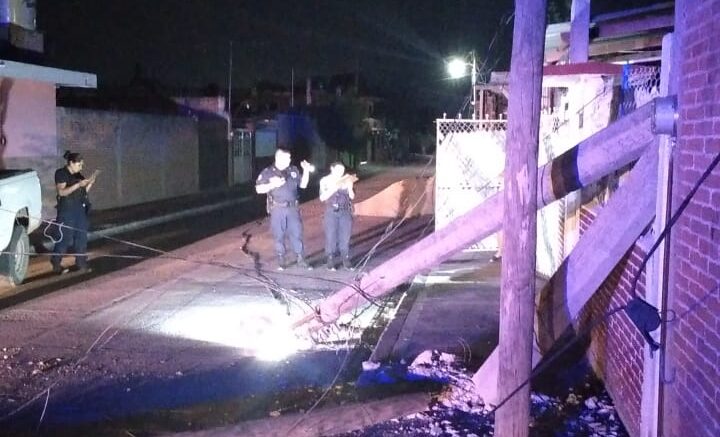 En el reporte inicial se hablaba de una camioneta que había tirado un poste de la Comisión Federal de Electricidad, en el exterior del domicilio ubicado en calle Corregidora No.121.