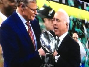 La defensa de los Eagles le arrebataron el ovoide a Tom Brady con dos minutos para finalizar el partido y quedó todo destinado para que los chicos de Piladelphia salieran victoriosos.