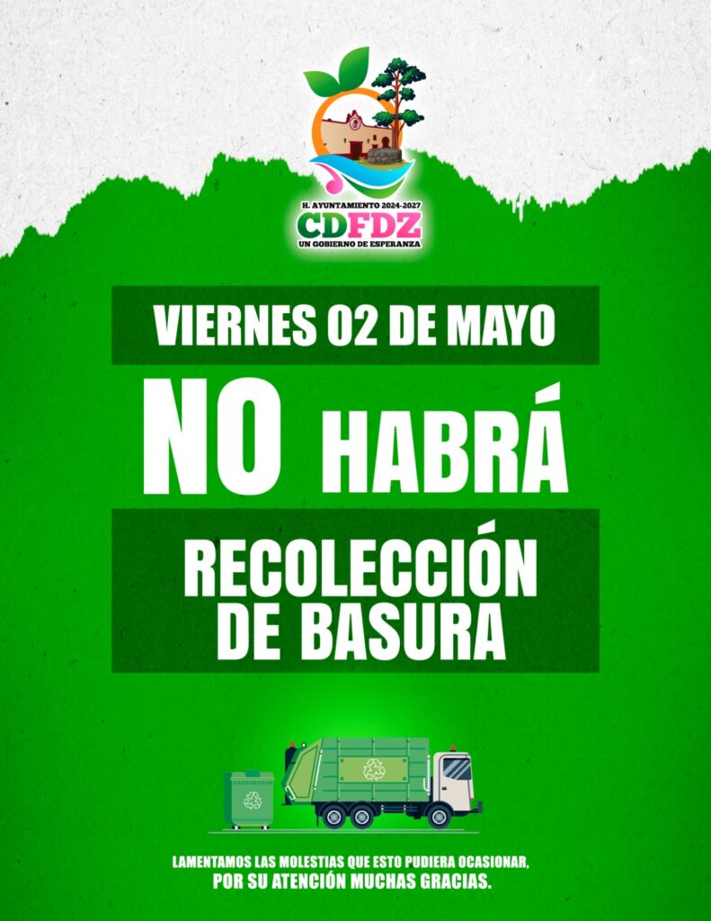 Es importante destacar que esta suspensión temporal también impactará el servicio de recolección de residuos sólidos urbanos. El Ayuntamiento informó que dicho servicio no se prestará el viernes 2 de mayo.