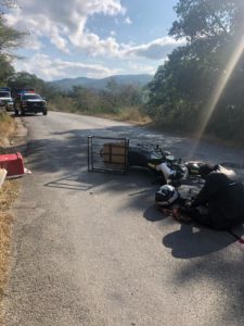 La tarde de hoy se registró un accidente en la carretera estatal Rayón-Lagunillas entre un taxi y una motocicleta resultando lesionado de gravedad el conductor de la motocicleta.
