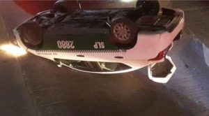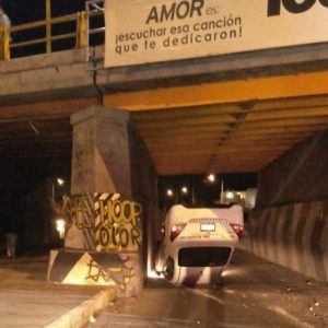 Taxista vuelca en el bulevar río Santiago la madrugada de hoy
