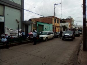 Los trabajadores se encuentran en el exterior de las oficinas con un número de 30 personas a cargo del Secretario de la Secc. 158 de telefonistas Miguel Jara Rios.