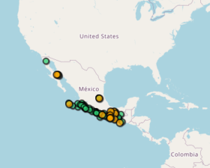 Región epicentral: 57 km al OESTE de TAMAZUNCHALE, SLP.