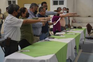 Junto al equipo de trabajo de la Coordinación de Desarrollo Social y Obras Públicas encabezado por Daniel Tovar González, y Ernesto Torres Maldonado, Delegado de la Secretaría de Desarrollo Social y Regional (SEDESORE), realizaron la instalación del nuevo Consejo de Desarrollo Social 2021-2024.