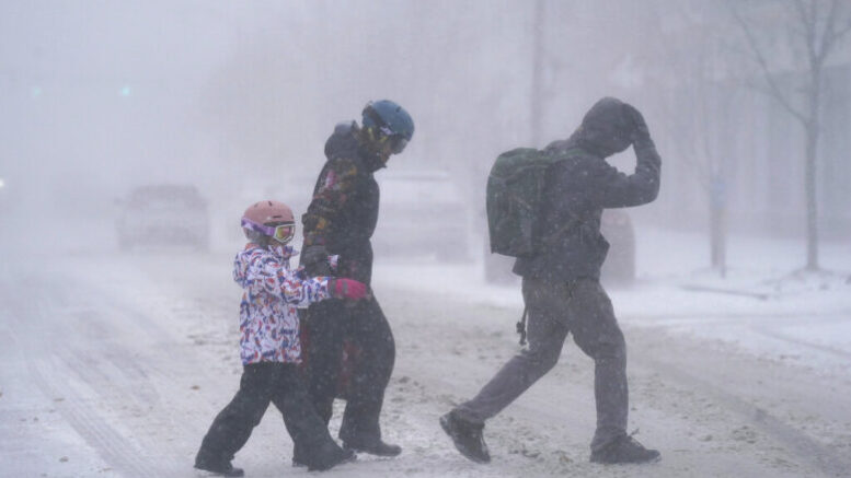 Los meteorólogos dijeron que un ciclón bomba —lo cual ocurre cuando la presión atmosférica desciende muy rápidamente durante una tormenta intensa— se desarrolló cerca de los Grandes Lagos, provocando condiciones de ventisca, incluidos fuertes vientos y nieve.