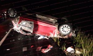 El accidente se registró en la madrugada de hoy el vehículo donde viajaba la empleada del municipio volcó y quedó con sus llantas para arriba .
