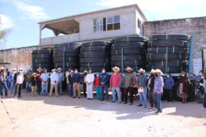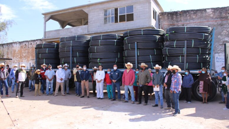Lo anterior se puso de manifiesto durante la entrega de 4 mil metros de manguera de polietileno, de alta densidad, de 2 pulgadas, realizada por el Alcalde José Ramón Torres, quien acudió a este poblado acompañado de la Presidenta del Sistema Municipal para el Desarrollo Integral de la Familia Rosa Isela Konishi Romero y del Secretario del Ayuntamiento, Rubén González Juárez.