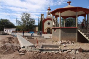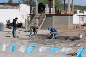 En su visita a este lugar, las autoridades verificaron también los trabajos de construcción de la plaza que se llevan a cabo, y para lo cual el Ayuntamiento aportó 182 sacos de cemento, así como el techado del patio cívico de la Escuela Primaria.