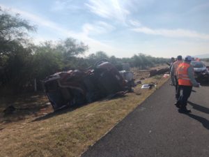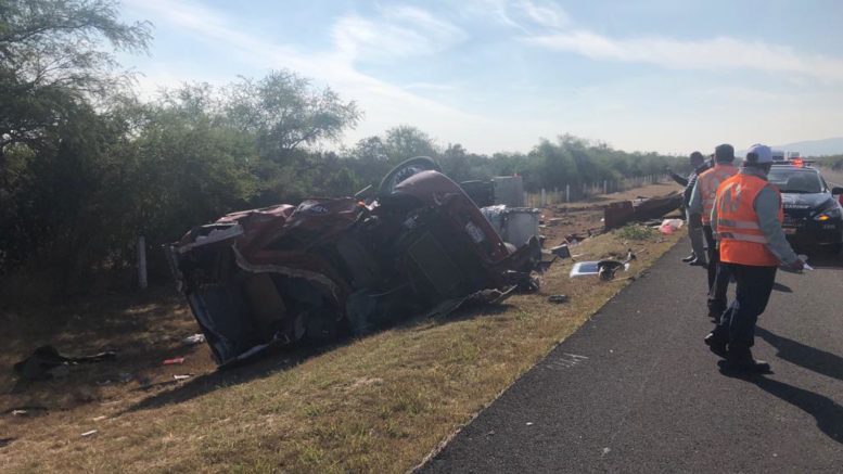 El accidente se registró en el 75 kilómetro 63+400 tramo villa Juárez-Cerritos un trailer tracto Marca internacional placas de identificación 754-EZ-6 SPF Colór rojo serie 3HSDJAPT0GN416325 modelo 2016 motor no. 19890862