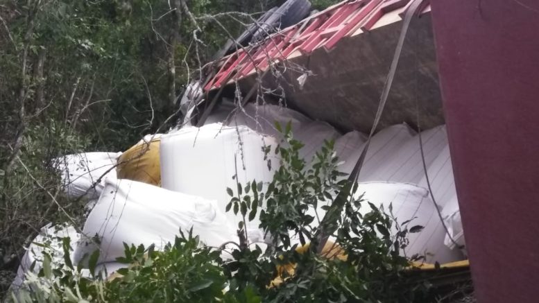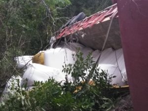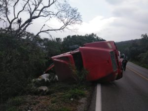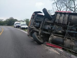 La tarde Del jueves se reportó un accidente en la carretera sobre la carretera libre Rayón-Valles donde un trailer cargado con fertilizantes se volcó cerca de las Microondas Tortugas.