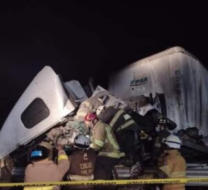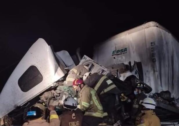 En el lugar 4 Tractocamiones se impactaron de manera impresionante reduciéndose la cabina de uno de ellos a solo fierros retorcidos.