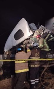 En el interior de esta unidad quedó el cuerpo sin vida de uno de los operadores, por lo que elementos del H. cuerpos de Bomberos realizaron maniobras para rescatar el cuerpo.